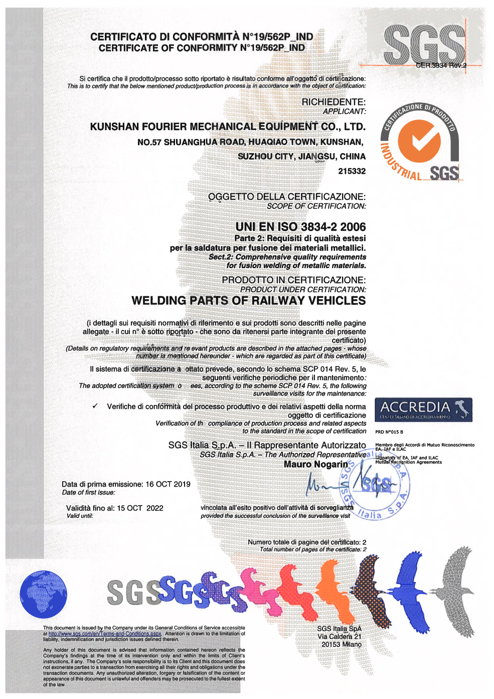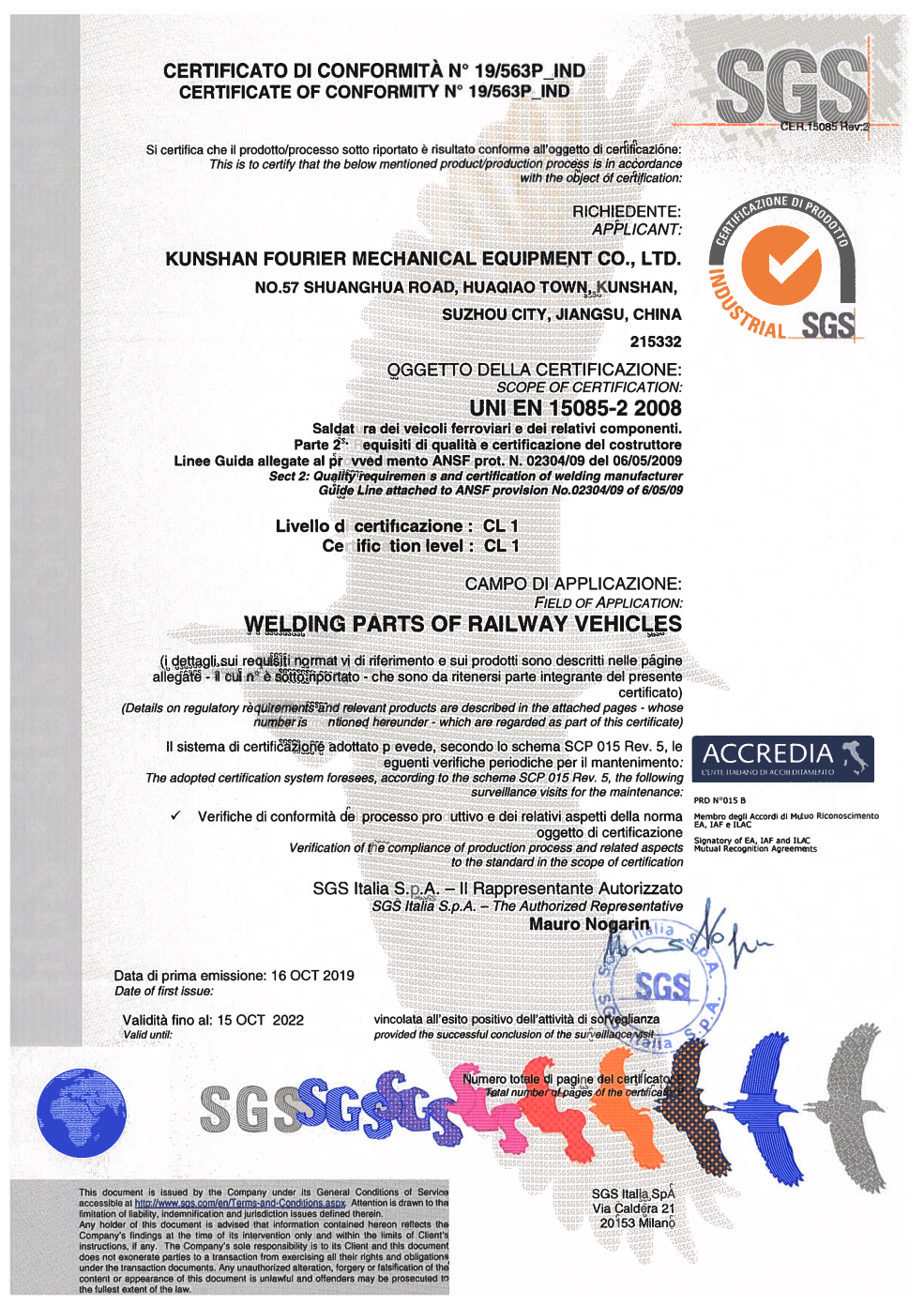 金仲泰高度重视公司管理体系建设和技术团队建设。公司先后取得了ISO 9001质量管理体系认证,ISO 3834焊接质量管理体系认证,以及EN 15085-2 CL1轨道车辆焊接体系认证。同时,公司拥有资深机械工程师,国际焊接工程师(IWE),ISO 9712 无损检验人员,符合各种标准要求的焊工多名。